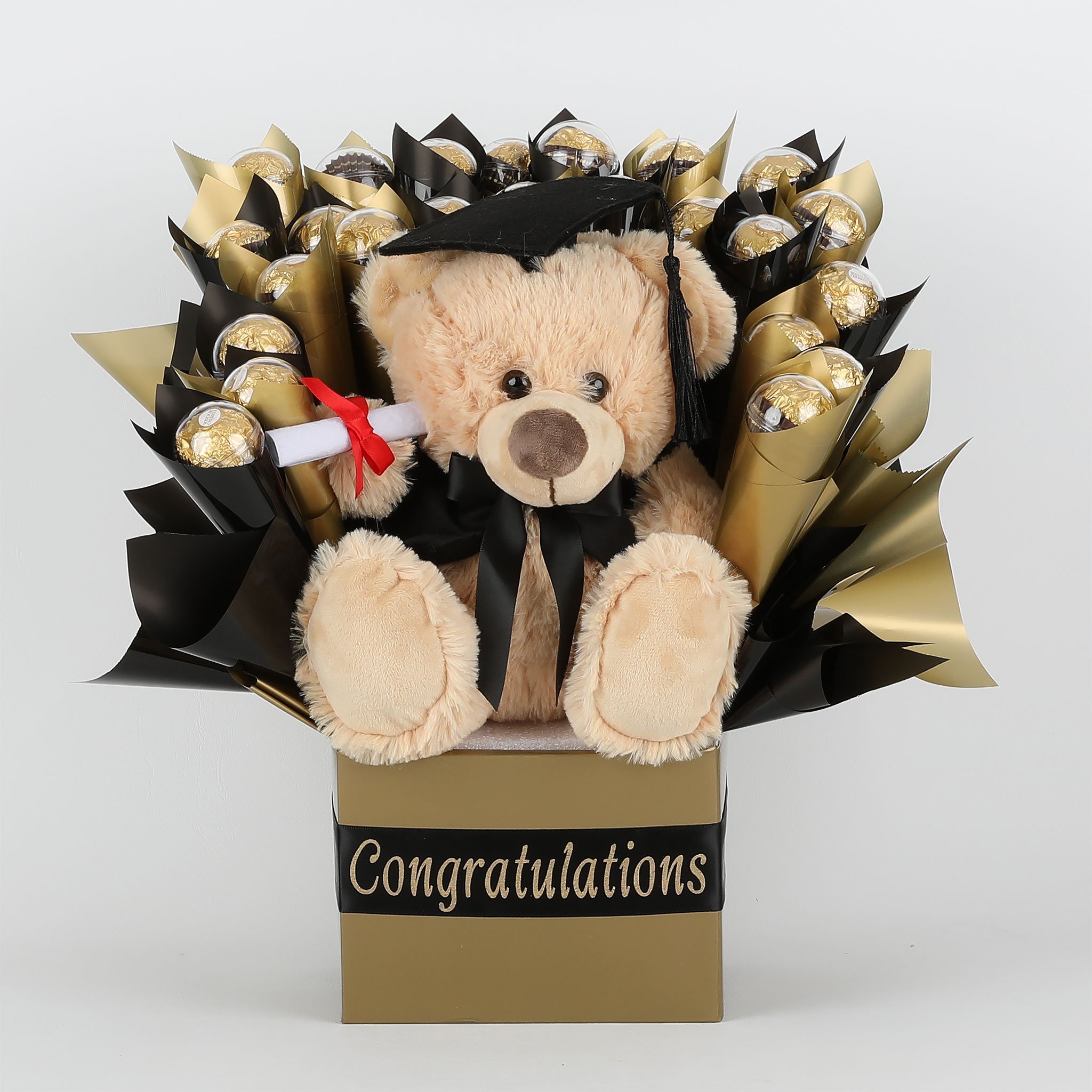 Includes a Graduation Bear and  24 delicious Ferrero Rocher chocolates to satisfy even the most discerning sweet tooth.