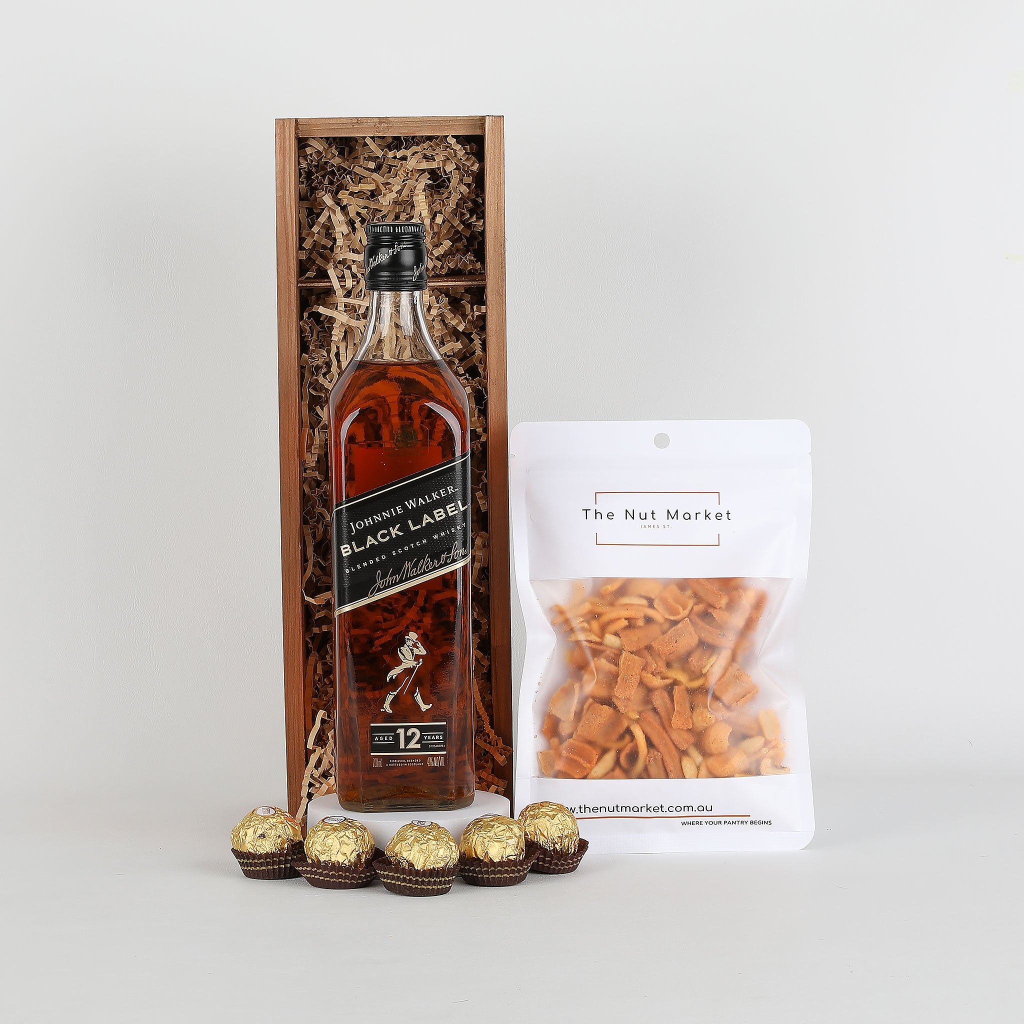 Johnnie Walker Black Label Whisky in Wooden Gift Box includes: