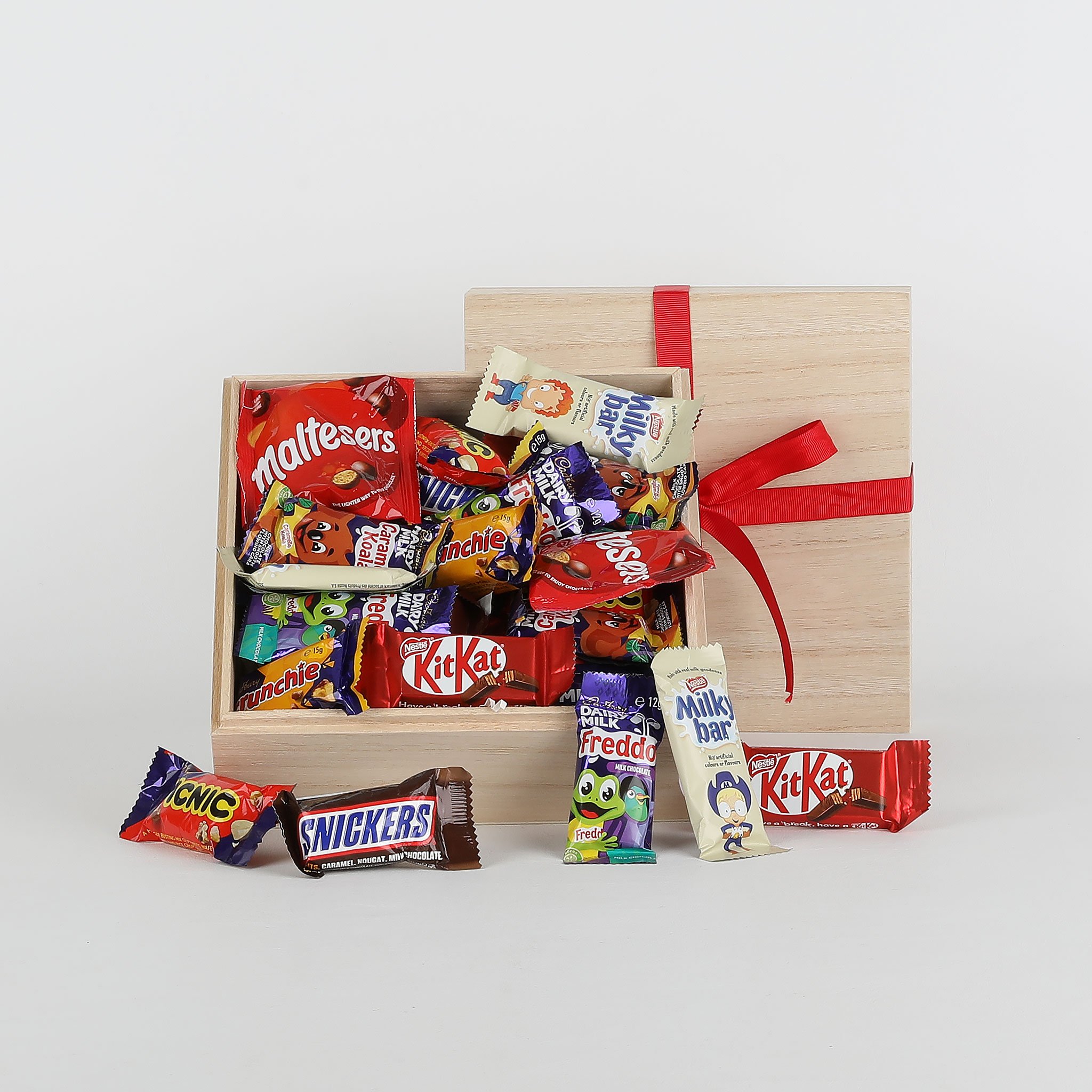 Our Little Box of Treats has a selection of 20 individually wrapped chocolates including Kit Kat, Cherry Ripe, Caramello Koala and Maltesers, plus many more!