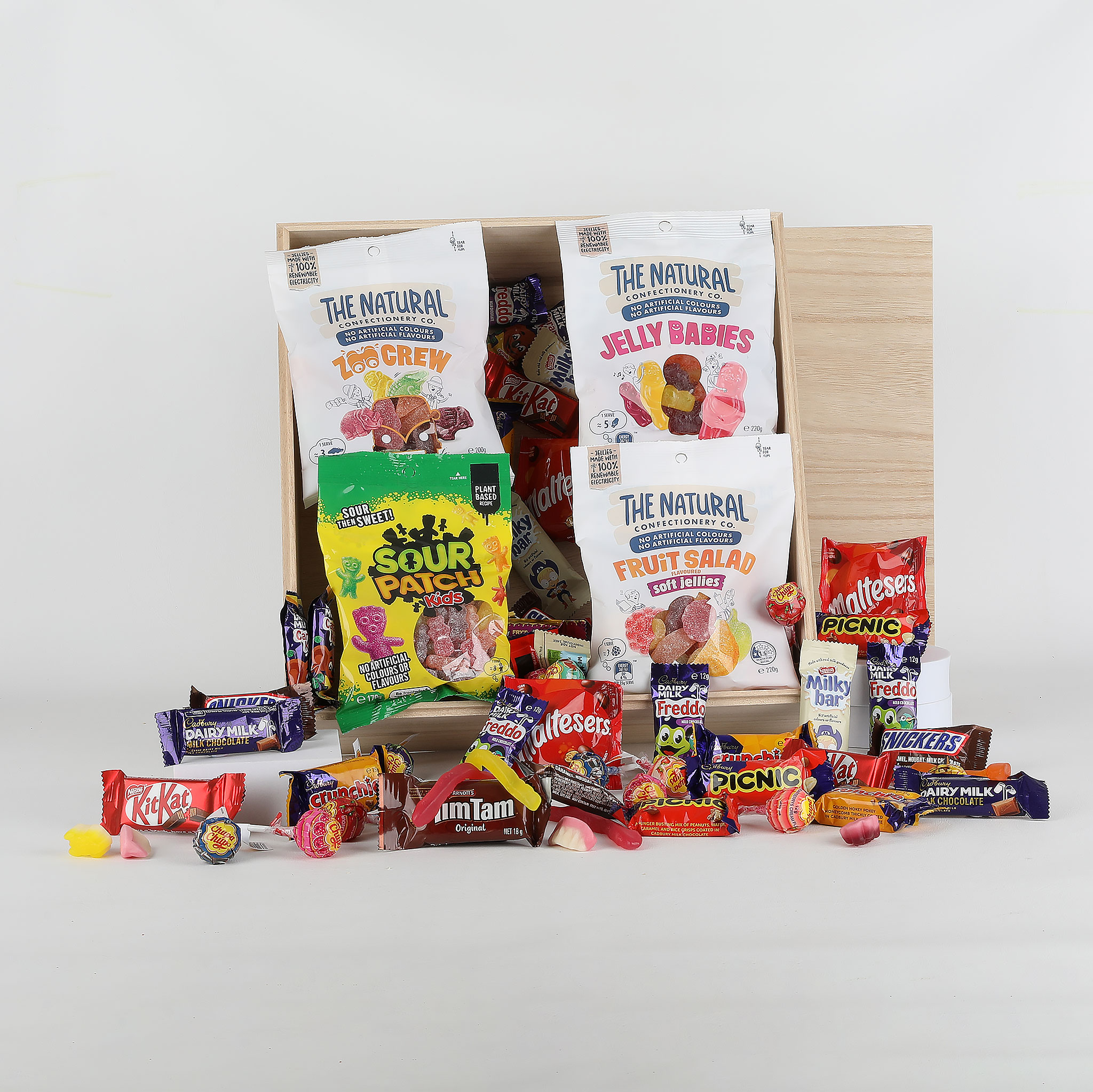 The Mega Party Box is a colourful explosion of fun! Packed with a mix of iconic chocolates, lollies, and soft jellies, it’s the ultimate treat for parties, celebrations, or just because. Perfect for sharing (or not!), this box is pure joy in every bite.