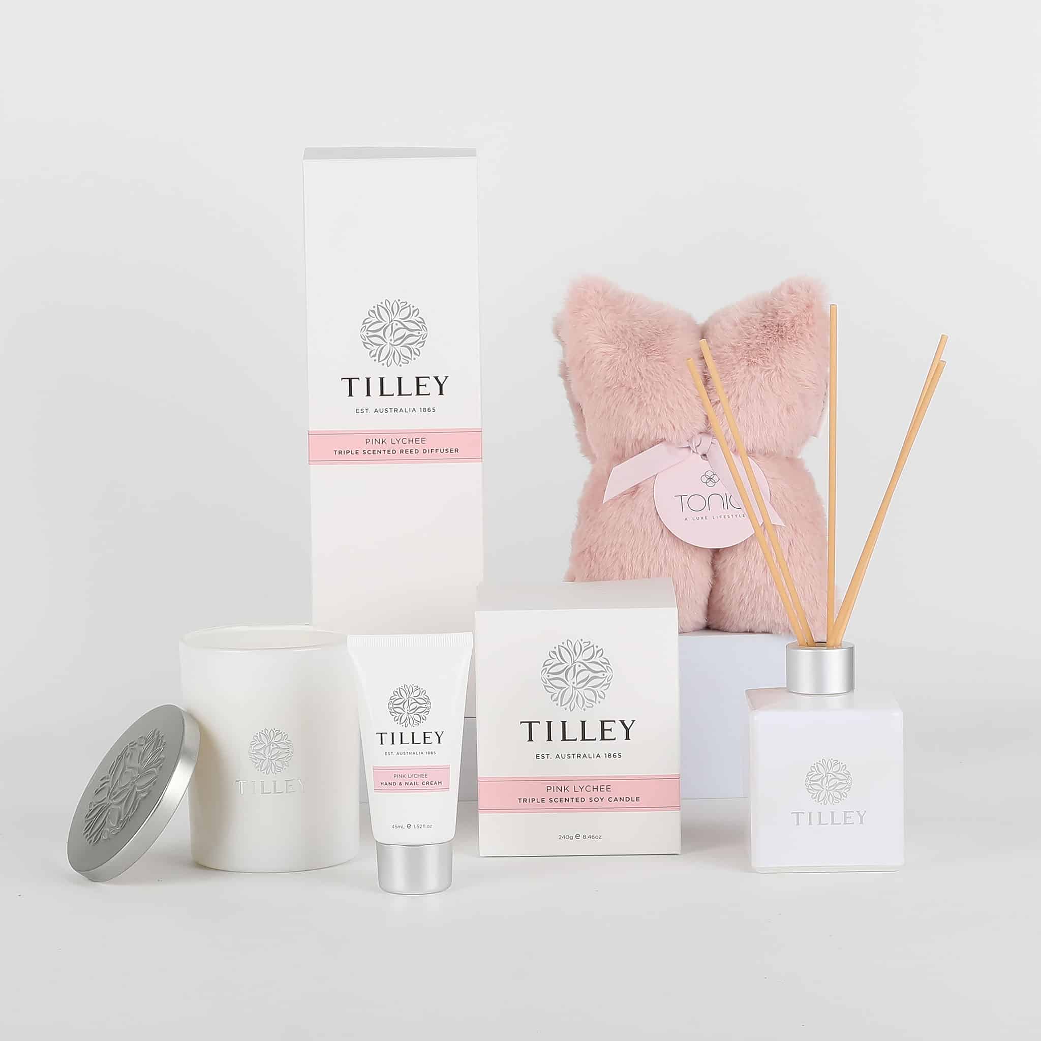 A stunning pink themed gift that includes Tilley’s Australia Pink Lychee reed diffuser, candle, Tonic Australia heat pillow, and premium chocolates. Comes packaged in a luxury gift box with ribbon, double bow and personalised gift card. This gift is perfect for anniversaries, birthdays and other celebrations. (Full product description below)